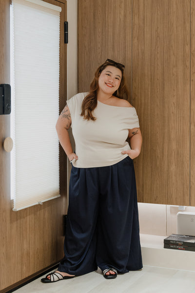 Also featured in the photos: Harper Asymmetrical Shoulder Top